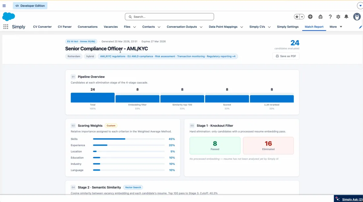 Voor veel bureaus voelt dit nog abstract. Maar de deadlines naderen. En als je straks moet aantonen dat je matching-systeem eerlijk en transparant werkt, wil je niet nog beginnen met documentatie. Bij Simply is dat van dag één ingebouwd.